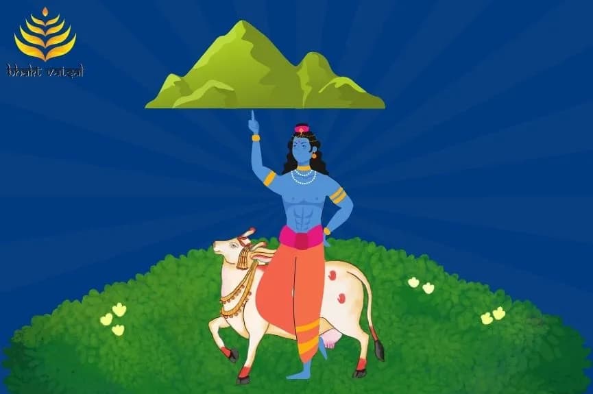 नन्द बाबा की यह बात सुन कर भगवान कृष्ण ने नन्द बाबा से कहा कि “वर्षा करना तो इंद्र का कर्तव्य हैं। और इंद्र भी भगवान श्री हरी विष्णु की आज्ञा के बिना कुछ नहीं करते इसलिए हमें इंद्र की जगह गोवर्धन पर्वत की पूजा करनी चाहिए। क्योंकि, यह गोवर्धन पर्वत ही हमारे लिए सब कुछ करता है। हमारी गौऐं इसी पर उगी हुई घास खाती हैं। हमारे घरों में आनेवाले फल अदि सभी वस्तु भी गोवर्धन से ही आते हैं। अतः हमें गोवर्धन पर्वत की ही पूजा करनी चाहिए।”